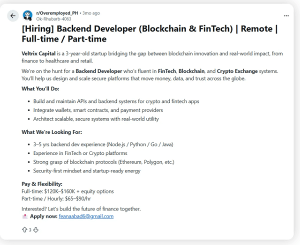 Gli attaccanti si presenterebbero come reclutatori di società apparentemente attive nel settore fintech o nel trading di asset digitali con profili social e domini web credibili tramite false offerte di lavoro sulle piattaforme Reddit, Facebook e LinkedIn.