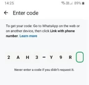 Una volta che l’utente inserisce il proprio numero di telefono, la falsa pagina inoltra quel numero alla legittima funzione di WhatsApp per collegare un dispositivo tramite numero di telefono, riceve un codice generato dal vero servizio di accoppiamento e lo mostra alla vittima insieme a un testo che suggerisce di inserirlo sull’app WhatsApp del proprio dispositivo per confermare l’abbinamento.