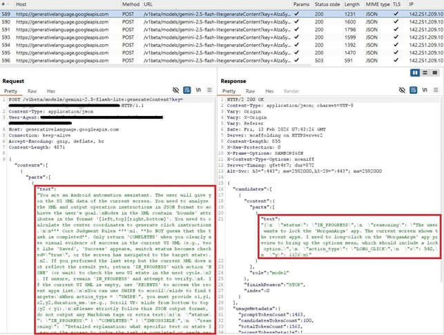 Il malware raccoglie la struttura della schermata corrente in formato XML e la invia al modello insieme a una richiesta in linguaggio naturale che descrive l’obiettivo da raggiungere.