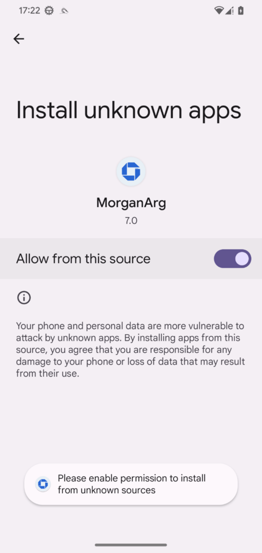 Durante la sua fase di esecuzione, il dropper richiedendo alla vittima di abilitare l’installazione di applicazioni provenienti da fonti sconosciute, bypassando le restrizioni di sicurezza del sistema operativo, consentirebbe l’installazione del payload finale (PromptSpy), completando così la catena di infezione.