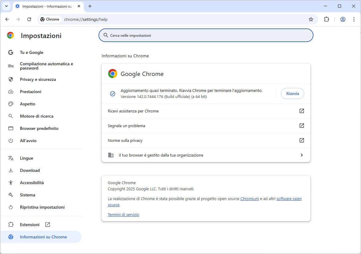 - Aggiornare immediatamente: la prima azione da intraprendere è assicurarsi di aggiornare Chrome all’ultima versione disponibile. Le vulnerabilità zero-day sono particolarmente pericolose quando i dispositivi non sono aggiornati, poiché le patch possono risolvere il problema in modo definitivo.