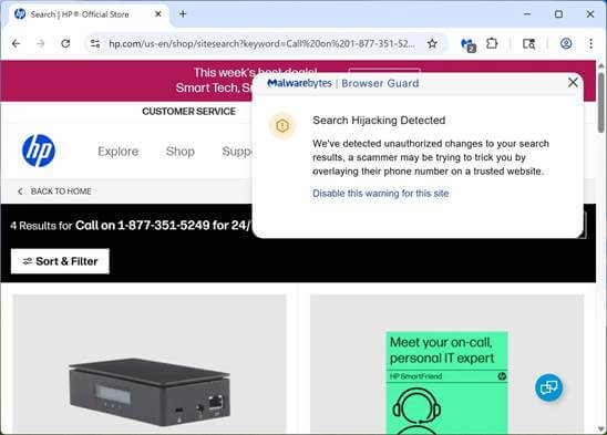 Il risultato è che la vittima si ritrova di fronte a un numero di telefono falso visualizzato su una pagina autentica.