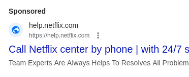 Il punto di forza di questa truffa è la sua apparente legittimità. L’utente, alla ricerca su Google di supporto tecnico o assistenza clienti, trova in cima ai risultati un annuncio sponsorizzato, che porta effettivamente all’indirizzo web reale del servizio clienti desiderato.