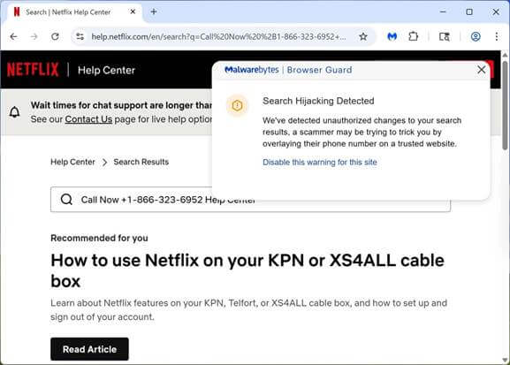 “La barra degli indirizzi del browser mostrerà quello del sito legittimo, quindi non c’è motivo di sospettare. Tuttavia, le informazioni che il visitatore vedrà saranno fuorvianti, perché i risultati di ricerca sono stati modificati per mostrare il numero del truffatore in modo evidente in quello che sembra un risultato di ricerca ufficiale”, spiega Jérôme Segura, Senior Director of Research di Malwarebytes, che continua: “Ciò è possibile perché la funzionalità di ricerca di Netflix riflette ciecamente qualsiasi dato inserito dagli utenti nel parametro di ricerca, senza un’adeguata sanificazione o convalida. Questo crea una vulnerabilità di tipo reflected input che i truffatori possono sfruttare”.